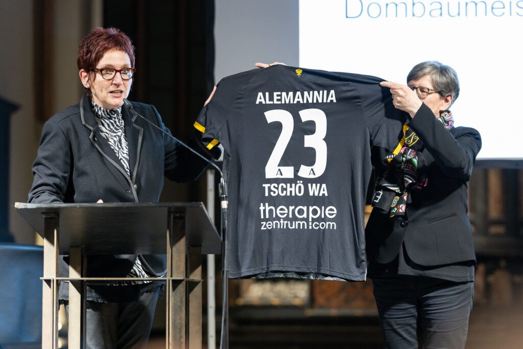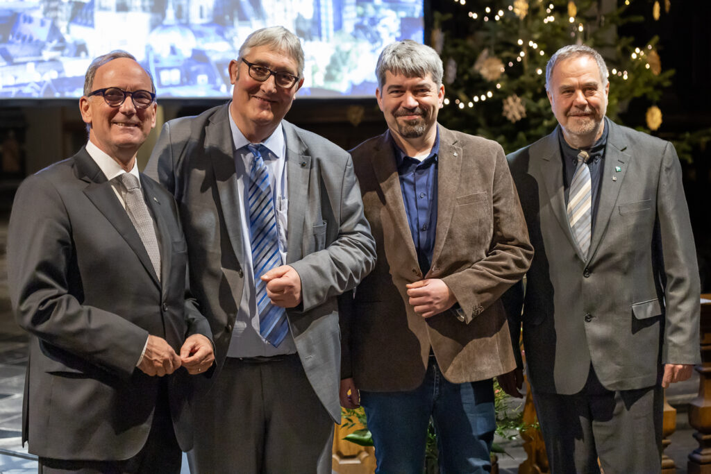Anerkennung, Bewunderung und Respekt für diese Lebensleistung schwangen auch in den Dankesworten von Hubert Herpers mit, dem Vorsitzenden des Karlsverein-Dombauvereins. Der Vorstand habe immer eng mit dem Dombaumeister zusammengearbeitet und sei stets dessen Investitionsvorschlägen gefolgt. In der Wirkungszeit von Helmut Maintz hat der „Förderverein des Doms“ Mittel von 7,5 Millionen Euro zu Verfügung gestellt. „Ihre Expertise und lokale Nahbarkeit werden fehlen“, bilanzierte Herpers und überreichte Maintz zum Abschied die goldene Ehrennadel, die zuvor erst einmal verliehen worden war.