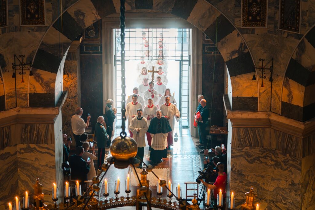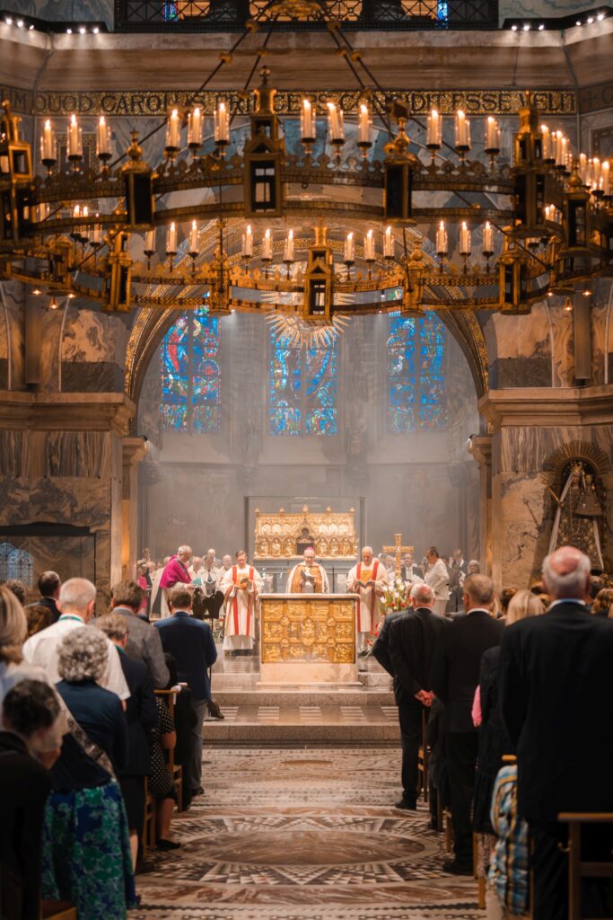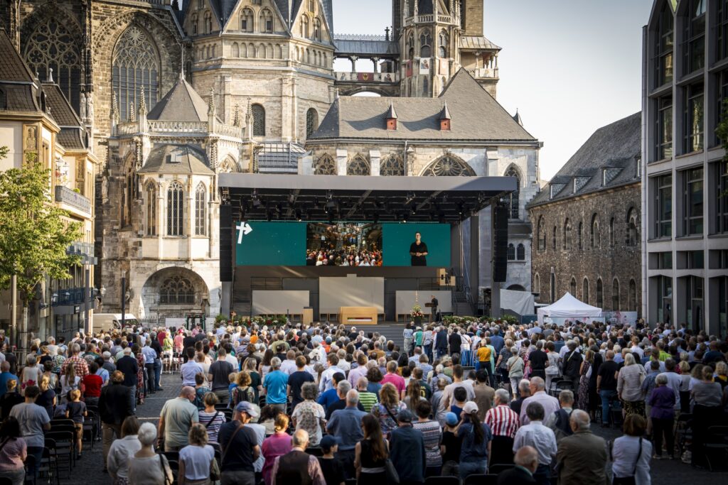 Rund 500 im Aachener Dom und geschätzt 2000 Menschen auf dem Katschhof verfolgen die Erhebungsfeier live, ungezählte weitere im Live-Stream von Domradio.de. Musikalisch gestaltet wird die Erhebungsfeier vom Aachener Domchor und dem Dombläserensemble unter der Leitung von Domkapellmeister Berthold Botzet.