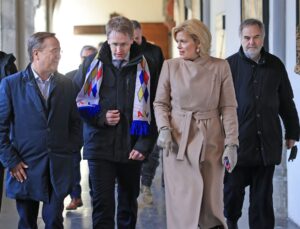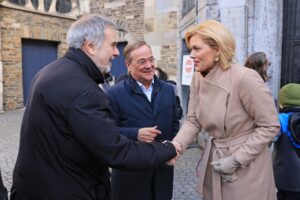 Aachen. Prominenter Besuch im Aachener Dom: Nach ihrem Bühnenauftritt im Rahmen der Großkundgebung „Wir sind Aachen. Nazis sind es nicht“ und vor der abendlichen Verleihung des Ordens „Wider den tierischen Ernst“ nutzten Preisträger Daniel Günther (Ministerpräsident Schleswig-Holsteins), Bundesfinanzminister Christian Lindner und die Bundestagsabgeordnete und CDU-Bundesschatzmeisterin Julia Klöckner die Gelegenheit zu einer Dombesichtigung. Als Lokalmatadore waren auch der Bundestagsabgeordnete und frühere NRW-Ministerpräsident Armin Laschet, AKV-Präsident Wolfgang Hyrenbach und Günthers Knappe Hans-Jörg Arp mit von der Partie.