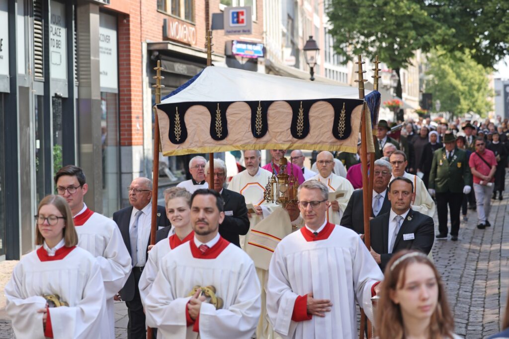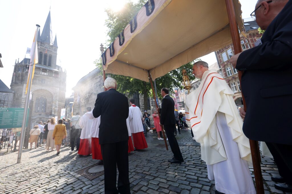 Der Fronleichnamsgottesdienst des Aachener Doms und der Aachener Innenstadtpfarrei „Franziska von Aachen“ findet am Donnerstag, 30. Mai, um 10 Uhr, unter freiem Himmel auf dem Münsterplatz statt. Seit der städtebaulichen Umgestaltung kann der Lindenplatz nicht mehr wie früher für diesen Anlass genutzt werden.