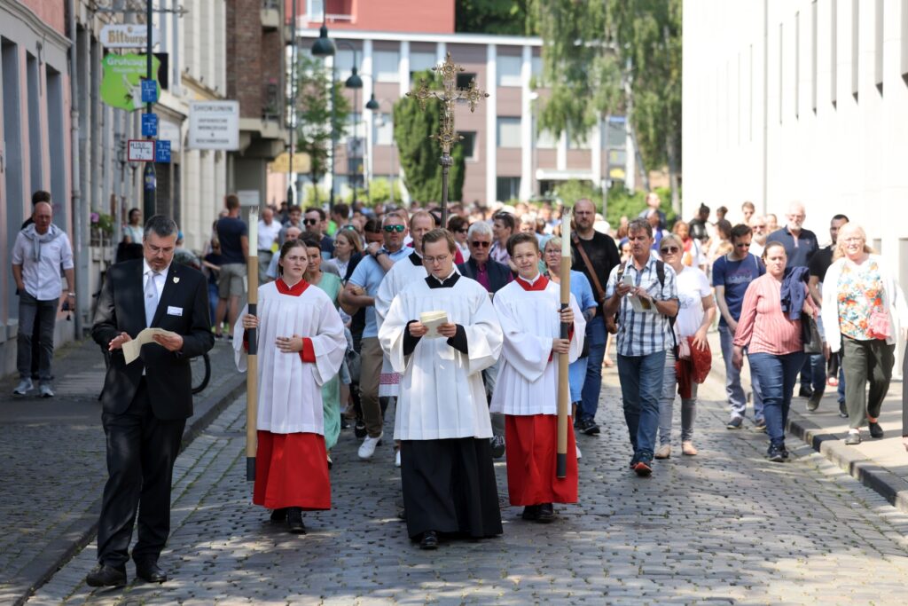 Der Heiligen Messe steht Weihbischof Karl Borsch vor. Es werden Kantoren- und Gemeindegesänge angestimmt. Die anschließende Prozession über den Markt, die Jakobstraße und die Bendelstraße wird begleitet vom Bläserensemble Privat-Kapelle „Neuß“. Im Dom findet gegen 12 Uhr der Schlusssegen statt.