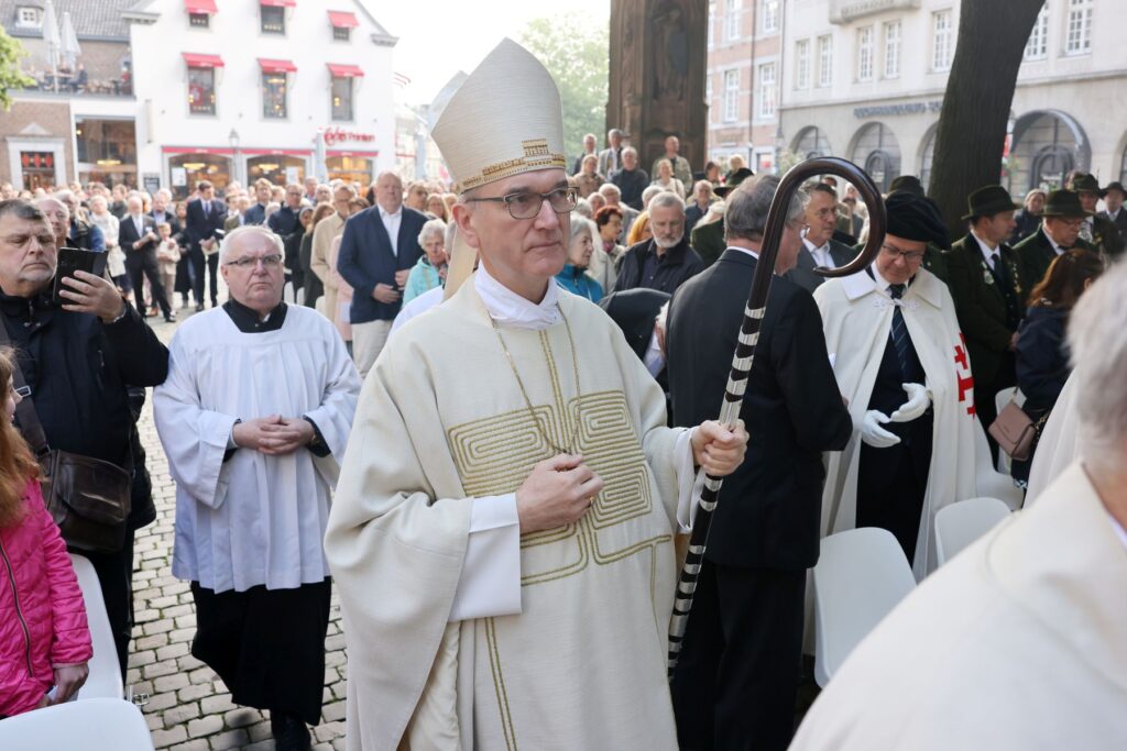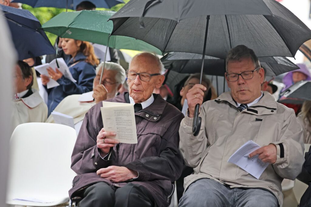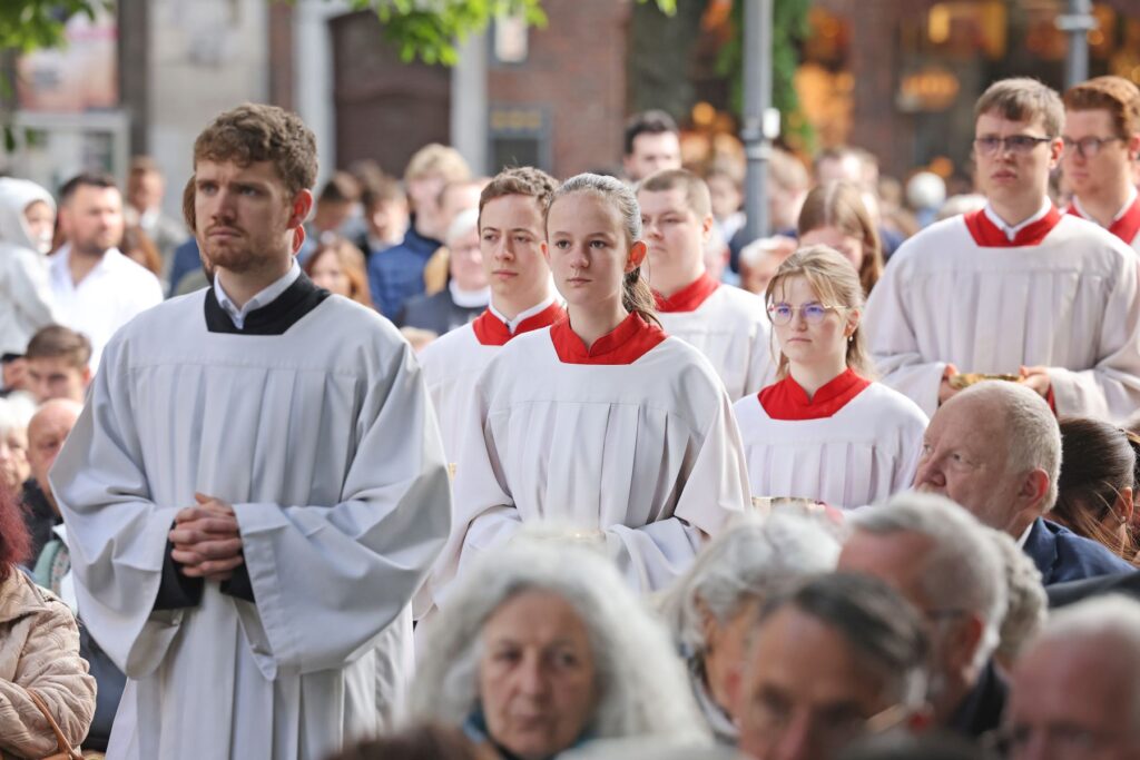 Durch den bei der Kommunionspendung einsetzenden Regen wurde die Prozession verkürzt. Im Dom konnte der sakramentale Schluss-Segen für alle trocken erteilt werden. Viele lobten den neuen Ort, der wegen der Veränderungen am bisher genutzten Lindenplatz, ausgesucht wurde als eine gute Möglichkeit, dieses Fest im Schatten des Doms draußen feiern zu können.