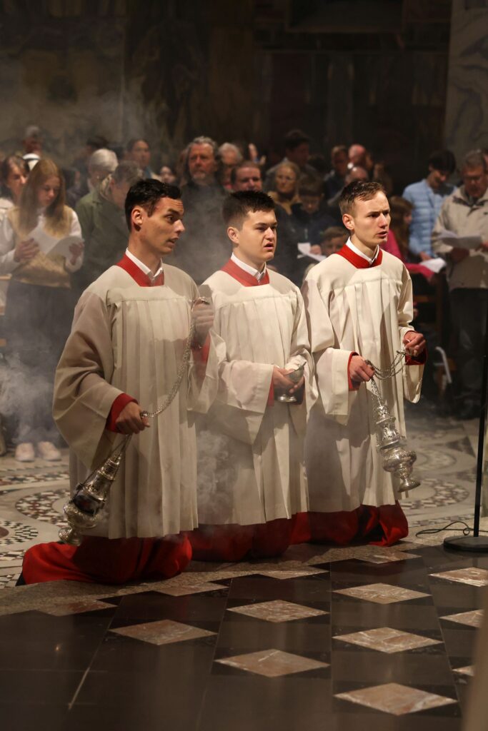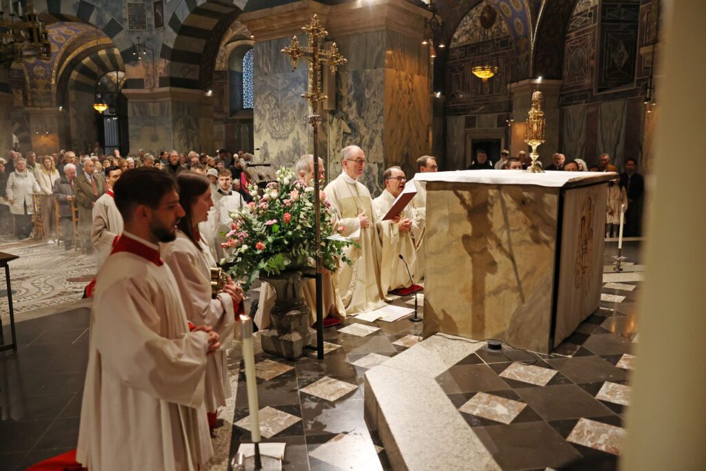 In seiner Predigt machte sich Weihbischof Karl Borsch Gedanken zum Zustand der Kirche und ihrer Zukunft. Eine Befragung der evangelischen und katholischen Kirche in Deutschland habe gezeigt, dass immer mehr Menschen ohne Religion und Glauben auskämen. Die Kirche von morgen werde kleiner und könne viele der Bauten nicht mehr füllen, die in der Hochkonjunktur des kirchlichen Lebens geschaffen wurden.