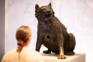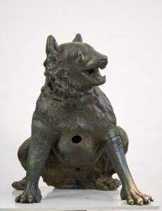 Wölfin oder Bärin? Griechisch oder römisch? Der Anblick der in der Vorhalle thronenden Tierplastik ist der Aachener Bevölkerung sehr vertraut. Über Jahrhunderte sahen die Menschen in ihr den Wolf aus der Dombausage, die „Lupa Carolina“. Dabei galt kunsthistorisch schon lange als gesichert, dass es sich bei der Skulptur nicht um einen Wolf, sondern um eine Bärin handelt. Herkunft, Datierung und Zusammensetzung waren jedoch unklar. Zuletzt war sie in Fachkreisen als mutmaßlich hellenistisch gedeutet worden. Diese Theorie kann nun ins Reich der Legenden verbannt werden. Anlässlich der geplanten Ausstellung hatten die Domschatzkammer Aachen und das Diözesanmuseum Paderborn eine Untersuchung veranlasst, die Fragen zur antiken Herstellungstechnik sowie zu späteren Reparaturen und Restaurierungsmaßnahmen klären sollte.