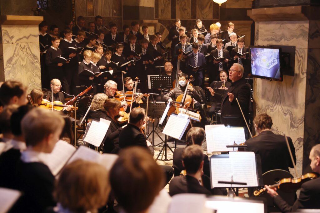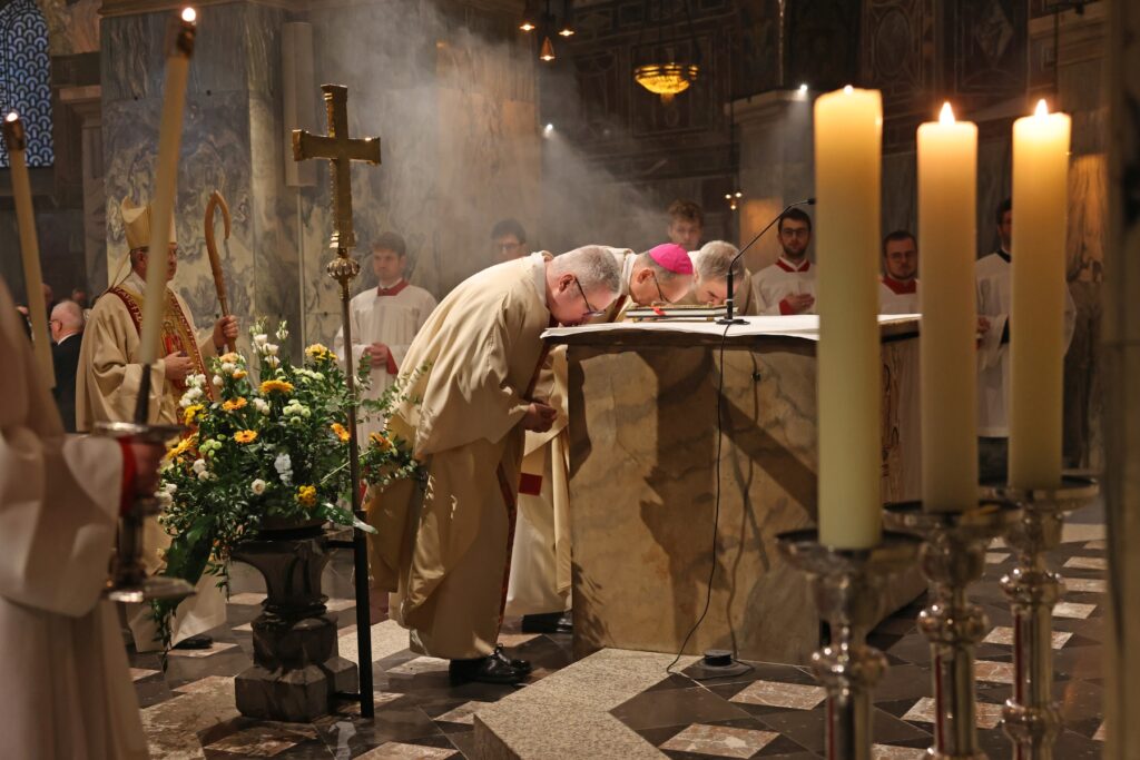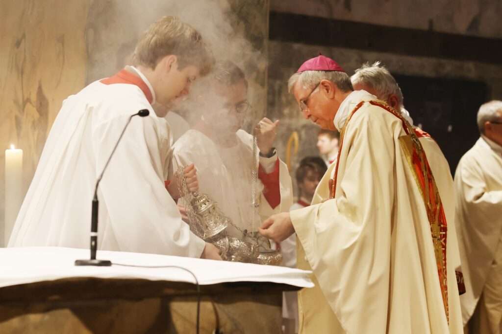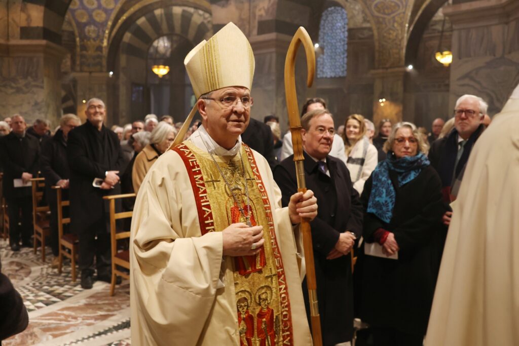 Brausende Orgelklänge, dichte Weihrauchschwaden, kunsthistorische Schätze im Kerzenschein, ein konzertantes Musikprogramm und eine kurzweilige, politische Predigt – das waren die gelungenen Zutaten des Pontifikalamts zum Karlsfest 2025. Mehrere hundert Besucherinnen und Besucher tauchten ein in ein zweistündiges Programm, das prall gefüllt war mit mittelalterlicher und musikalischer Liturgie. Als diesjähriger Gastbischof war Prof. Dr. Johann Bonny aus Antwerpen eingeladen.