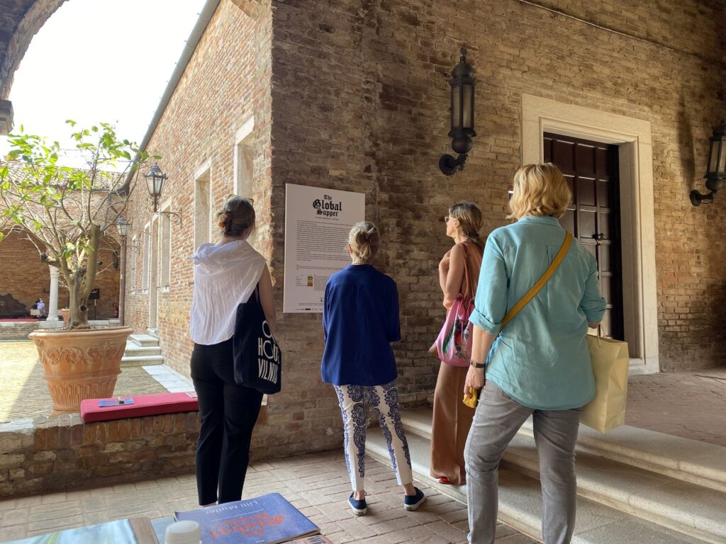 Last year the “The Global Supper” art installation attracted a great deal of attention during the Venice Biennale. In the courtyard of a historic church, the Los Angeles-based artist Lilli Muller created an immersive installation as a metaphor of Christ‘s Last Supper. Using symbolically set massive tables, she brought to light the vast economic inequality in the world in a simple but emphathetic way to spark dialogue and evoke change.